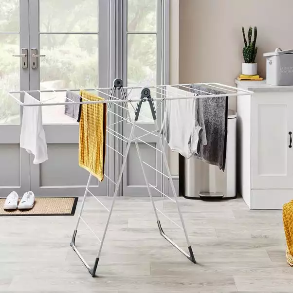 Featuring adjustable wings, this compact Addis airer is crafted from steel and has 4 corner hanging slots for socks.