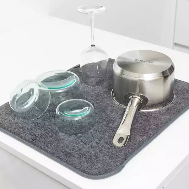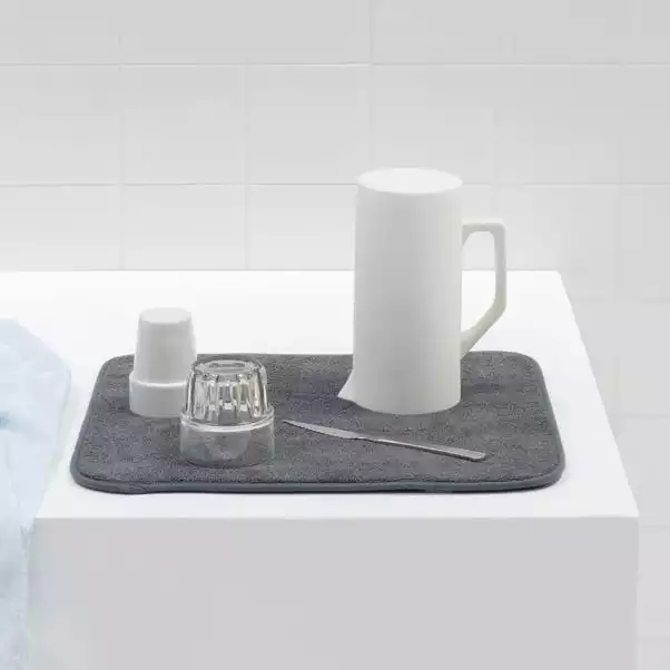 Designed by Brabantia, this dark grey microfibre dish drying mat is ideal on the worktop when handwashing pots, pans and glassware and features a practical non-slip surface. Machine washable at 60 degrees, this microfibre dish drying mat is foldable for ease of storage and absorbs 7 times its weight in water.