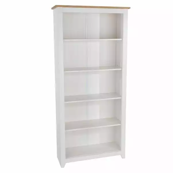 Blending traditional style with clean, contemporary styling the Capri 5 Shelf Bookcase is the perfect choice for enhancing your living room. With a clean and stunning contrast between the antique waxed pine and white hardwood this exceptional furniture provides the perfect place to display your accessories and ornaments.