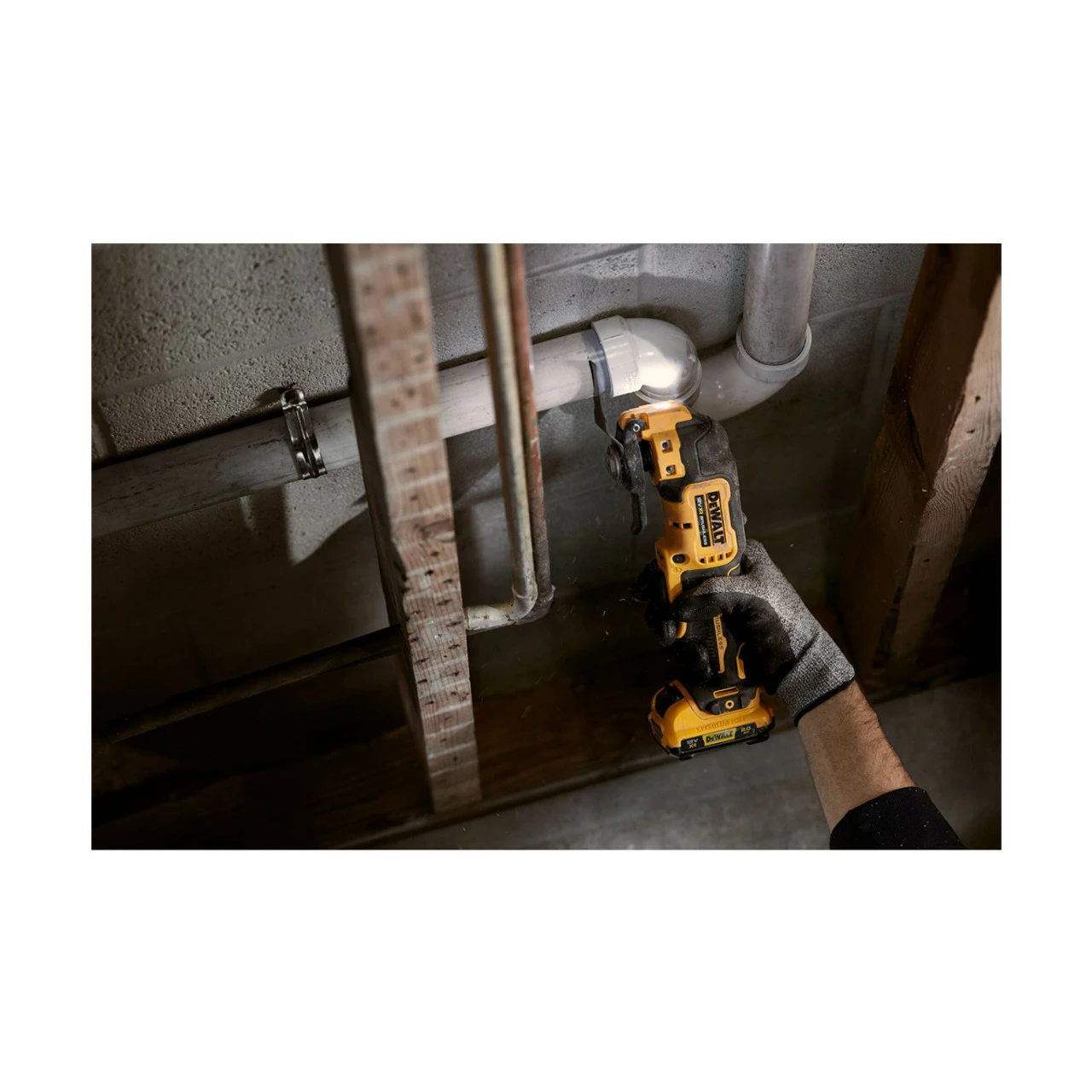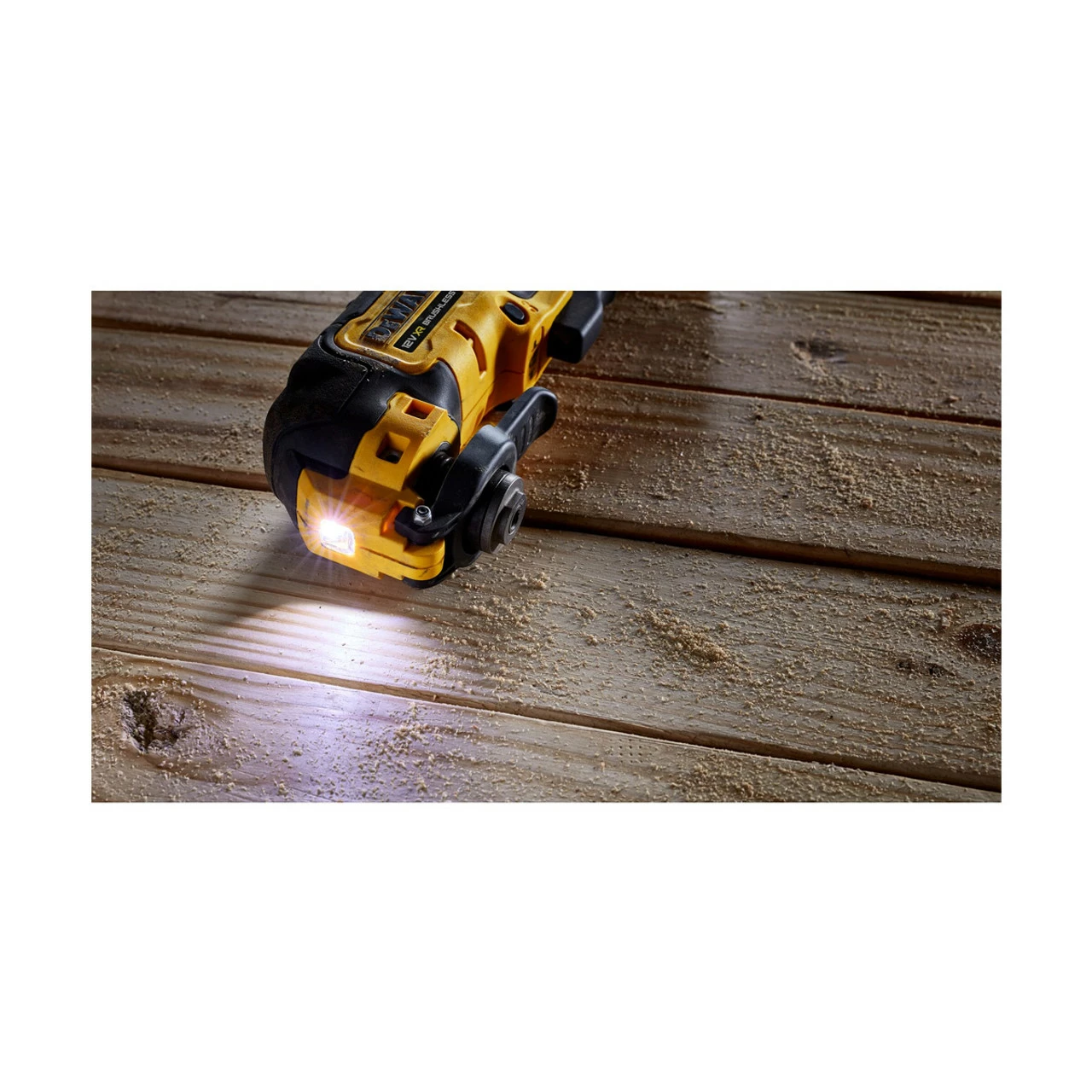The DeWalt DCS353 XR Brushless Multi-Tool has a dual-grip variable speed trigger with a lock-on feature for increased control when cutting, scraping, and sanding. A quick-change accessory system allows for the rapid replacement of blades and attachments. Its universal accessory adaptor allows it to be used with virtually any oscillating tool accessory brand.