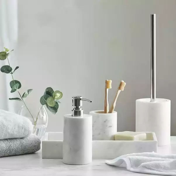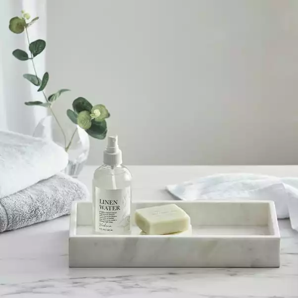 From the exclusive Dorma range, this white bathroom tray is unique in design. It is hand-crafted from natural marble making each item one of a kind due to the marble’s geological colour and texture variation. Its eco-friendly, sturdy design makes it long-lasting and durable. Coordinating items are available.
