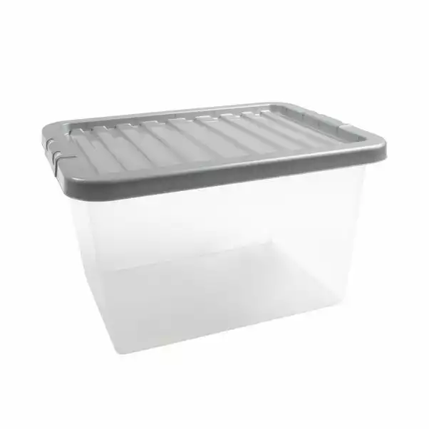 Designed from high quality plastic with a clear base and a silver lid, this 25 litre plastic storage box boasts a versatile design and is suitable for added extra storage for all around the home and workplace.