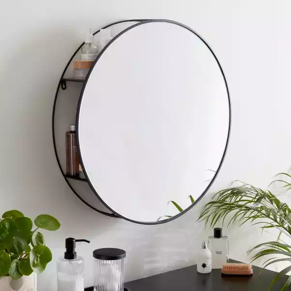 Our Apartment 60cm Round Mirror has a modern design which will look elegant in your bathroom. The anti-steam mirror is surrounded by a contemporary matte black frame which provides extra storage for your bathroom. Part assembly is required and the mirror is required to be hung on your wall.
