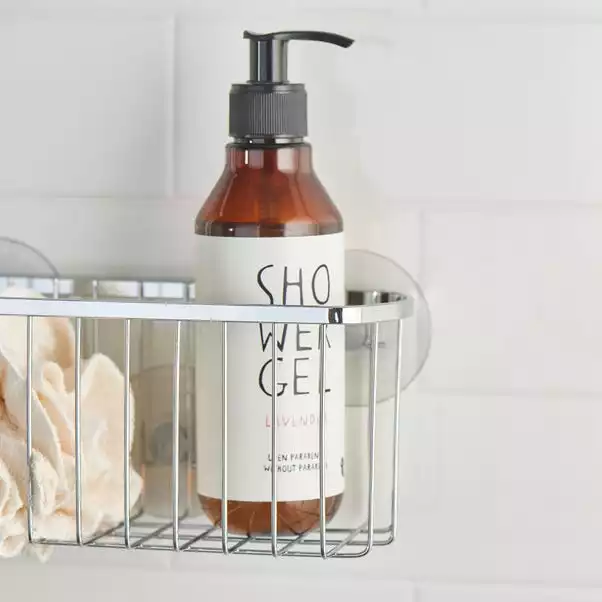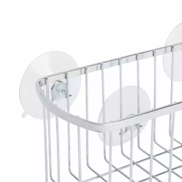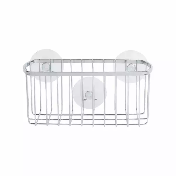 This rectangular chrome plated iron bathroom organiser from Aquarack is easy to secure with its large suction pads and is available in a choice of colours.