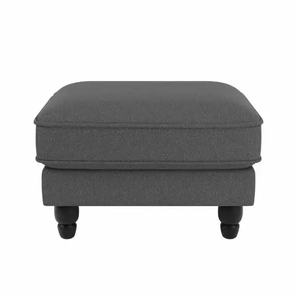 Boasting a modern take on a vintage design, the Beatrice footstool would bring a touch of timeless style to your home, crafted from a soft touch, polyester fabric in a choice of colours. The foam and fibre filled cushion offers luxurious comfort, making this footstool the perfect place to put your feet up, whilst the piped edge detailing and turned, natural finished rubberwood legs complete the stylish look.