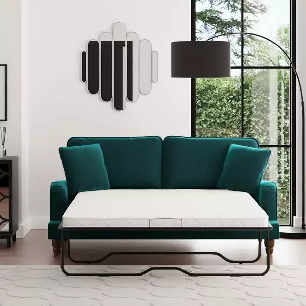 Offering a modern take on a vintage style, the Beatrice sofa bed would make a magnificent addition to any home. This sofa is upholstered in a 100% recycled velvet fabric that’s both luxuriously soft and kind to the environment, made using a total of 143 recycled plastic bottles. Complete with a pleated arm design, piped edge detailing and turned, natural finished rubberwood legs, this sofa offers a stunning design that would bring a touch of sophistication and elegance to any room. As well as being undoubtedly stylish, the Beatrice is comfortable too, offering foam and fibre filled seats and a webbed and sprung base to provide optimal support, as well as plush fibre-filled back cushions and two matching scatter cushions.