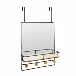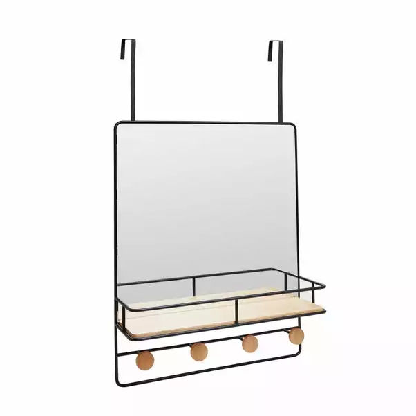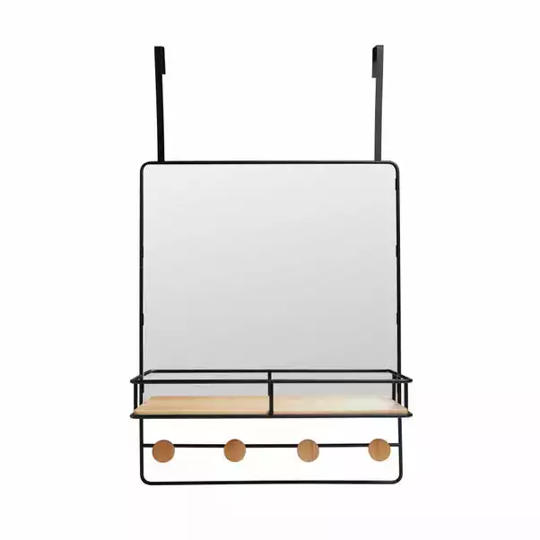 Boasting a fashionable black wire design, this over the door mirror is the perfect option for saving space in your bathroom. Use the mirror for multiple purposes with the shelf and 4 hooks, helping you keep your bathroom accessories tidy. The mirror is made to last as it is crafted from durable iron and bamboo.