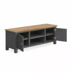 This wide Bromley TV unit comes complete with a fixed shelf, two ample sized cupboards and cable access, perfect for storing away household items and keeping cables neat and tidy.
