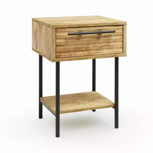 Add some fun and style to your home with this gorgeous Bryant 1 Drawer Bedside! Featuring a ribbed drawer front detail and a single shelf, this stunning bedside also has black metal handles and sleek metal legs. Ideal for any living room or bedroom, it’s the perfect addition to add extra storage while creating an eye-catching focal point in your home.