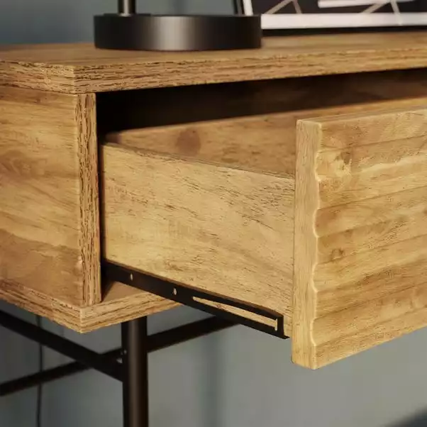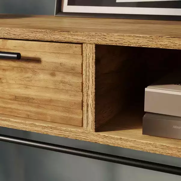 Introducing the stylish storage solution you never knew you needed – the Console Table! Made of mango wood effect with sleek black metal handles and legs, this console table will make a statement in any room. Enjoy added storage with the drawer and shelf, perfect for hiding away remotes and chargers.