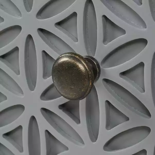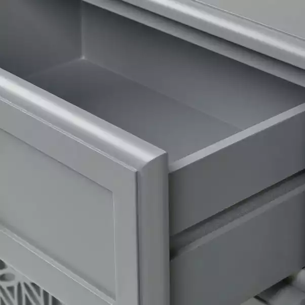 Characterised by the stunning carved design on the drawer fronts, the Carys range is perfect for adding a classy touch to your bedroom. This beautiful collection also boasts a clean, grey painted finish, complete with distressed brass look handles.