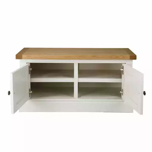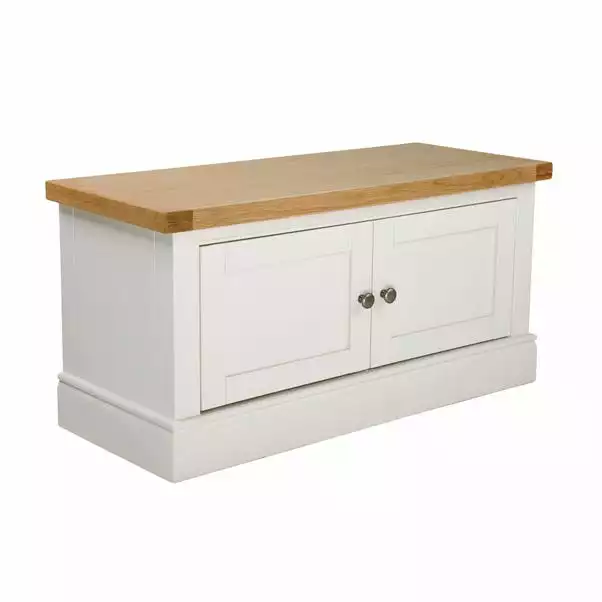 Crafted with the contemporary country charm, this fully assembled hallway bench features a double door cupboard complete with a fixed shelf for additional storage space.