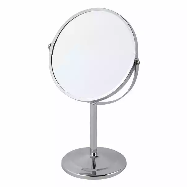 Made with two magnification options, this pedestal mirror features 360 degree swivel rotation and is completed by a chrome finish.