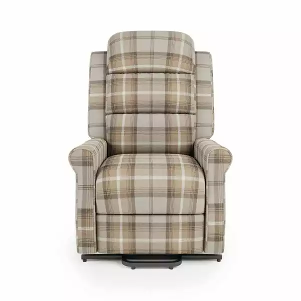 The Edith has a traditional, soft cushioned back design and checked pattern that will complement any home decor. The cushioned backrest on this rise and recline chair offers supreme comfort and support, while the smooth motor can be operated using the easy to use remote that allows this chair to be raised to a standing position for an easier transfer to and from the chair.