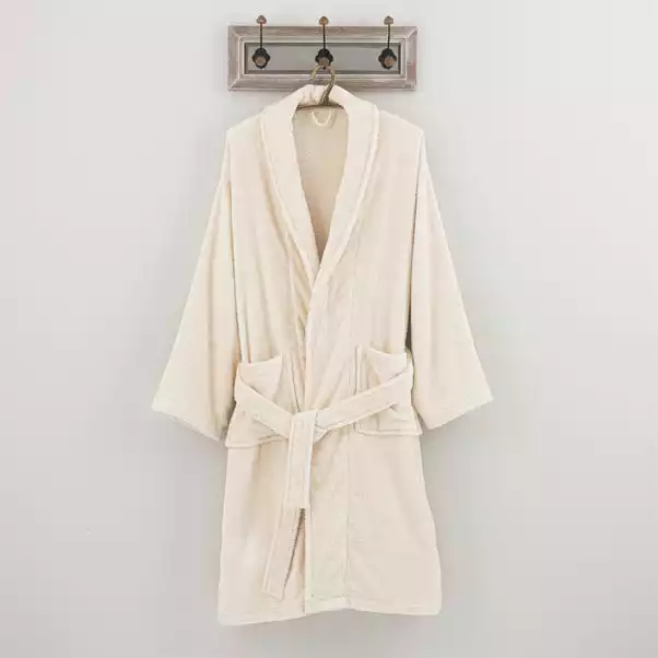 Our natural Egyptian cotton robe is the colour of natural cotton as grown in nature. It has not been bleached or dyed, therefore saving energy, chemicals and using less than half the amount of water to produce, making it kinder to the environment and allowing the fibres to retain their natural softness, perfect to snuggle into.