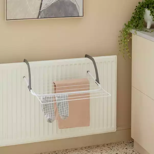 Ideal for all small in-between drying jobs or for flat drying of delicate laundry, this fold out radiator airer features adjustable arms to fit any radiator and increase drying space. This airer has a maximum weight load of 4.5kg and its compact size means its easy to store away after use. Perfect for drying clothes in indoor and outdoor spaces.