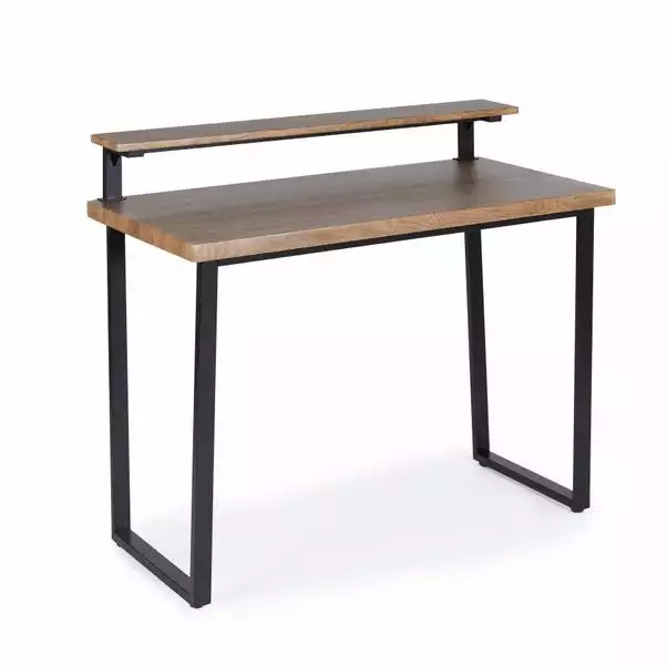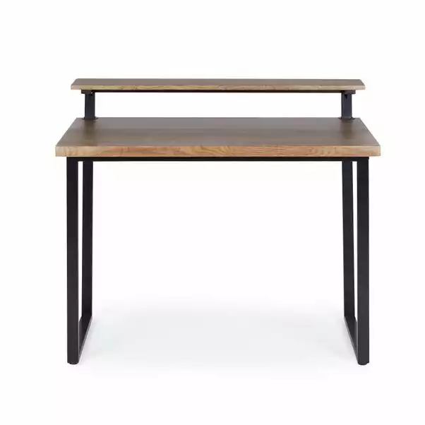 Featuring a modern design, the Freddie Rustic Wood Step Up Shelf Desk will make the perfect addition to any office space. Crafted with a rustic wood effect finish complemented with a stylish black metal frame, the Freddie is practical and provides ample desk space with its step up shelf design. With its simple lines and subtle rustic style, the Freddie step up shelf will add a touch of modern style to any space.