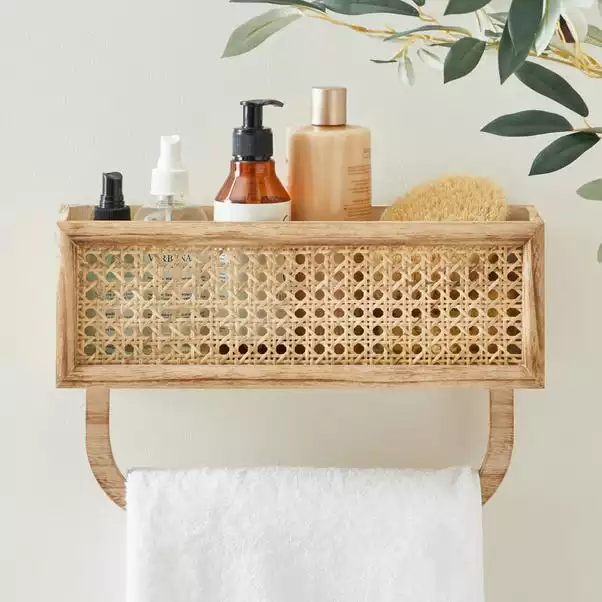 Perfect for compact living, this towel rail keeps your bathroom neat and tidy. With a natural design this French Cane Towel Rail is space saving and made from easy to clean rattan. The French Cane design makes this towel rail shelf stylish and modern.