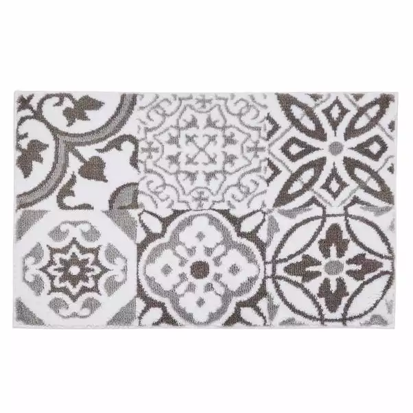 With a stylish global inspired geo design in a grey colourway, this bath mat from our Geo Tile collection is crafted from quality polyester fabric, offering a soft, durable and absorbent handle. Coordinate with our other Geo Tile accessories.