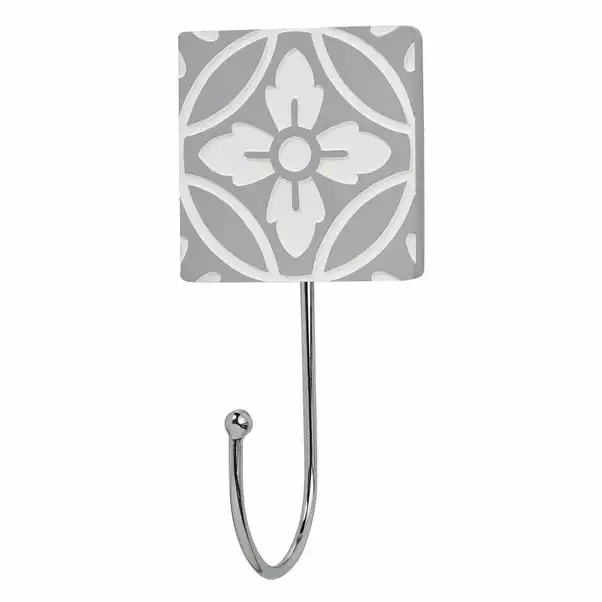 Dunelm Geo Tile Grey Floral Hook