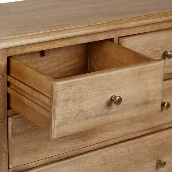Inspired by french styling, our Giselle collection is crafted from 100% solid mango wood, paired with antique style metal handles and a washed finish to bring out the natural beauty of the wood. Complete with hand carved detailing and stunning curved legs, this range boasts a delicate, timeless design that would blend perfectly with traditional home decor styles.