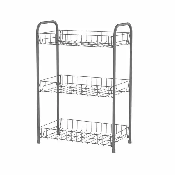 Perfect for storing all your kitchen must haves, this 3 tier slimline trolley is versatile and stylish. With a large capacity and ample storage space, this trolley can be used to store fruit and vegetables, crisps and snacks or it can be used in a completely different room. This trolley in a stylish grey colourway compliments any room interior and the trolley itself is easy to install.