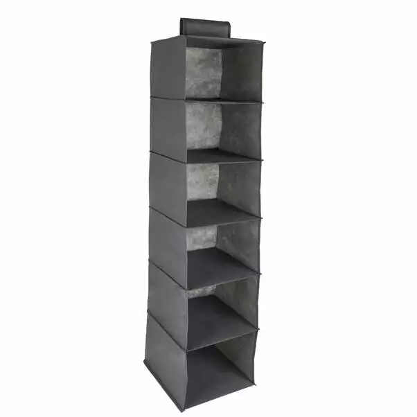 Designed with strong velcro tabs and is lightweight this grey organiser hangs up neatly in a wardrobe as a practical storage solution. It has six compartments and is super quick and easy to install.