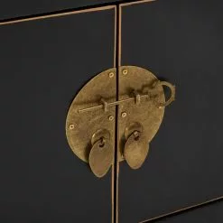 Featuring a beautiful Chinese and Japanese inspired design, the Hanna range offer a versatile storage solution that will add a unique touch to your home. Designed in a bold black finish with a contrasting distressed gold detailing, this exquisite range features authentic oriental handles with a loose pin lock mechanism, perfect to glam any room.