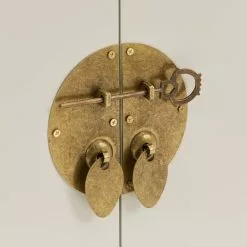 Complete with two doors and a spacious drawer, the Hanna mini chest is supplied fully assembled and comes complete with a matching, distressed gold effect locking pin for the door.