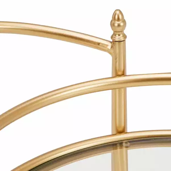 Finished in a stunning gold effect colour, the Harper drinks trolley would make a glamorous addition to any home. The trolley is crafted from metal and tempered glass and comes complete with a convenient handle and castors for added manoeuvrability.