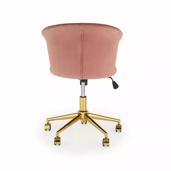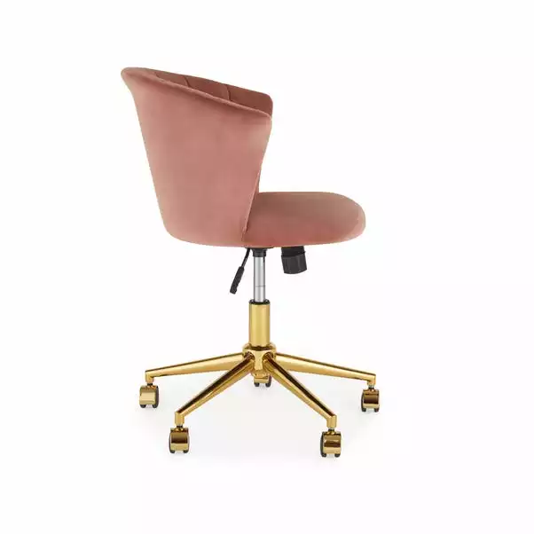 Finished in a soft touch velvet fabric in a seletion of gorgeous colourways, the Kendall office chair features a foam filled seat and curved backrest to provide maximum comfort. Inspired by traditional art deco designs, this elegant chair is crafted with a pleated, curved shell back and a gold finished metal base to add a contemporary touch. As practical as it is stylish, this office chair comes complete with a height adjustable gas lift mechanism, and a lockable tilt feature with weight tension control on a wheeled swivel base.