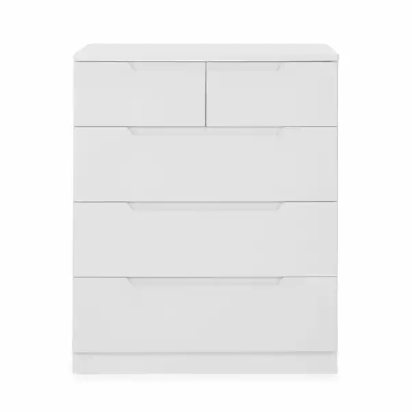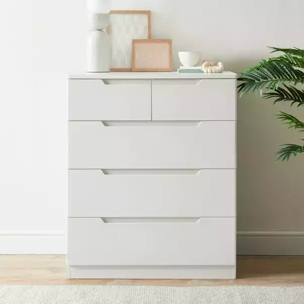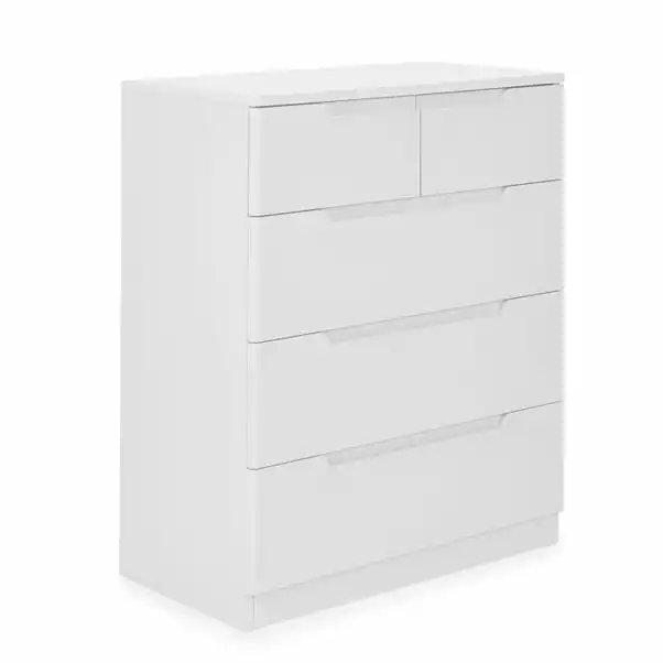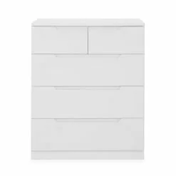 Offering a perfect blend of modern and minimal styling, the Larson chest of 3 drawers will add a fresh touch to any room of the house. Featuring a funky groove handle design, along with the 5 drawers makes this self-assembly chest both practical and attractive. With ample storage space, this chest is perfect for keeping your room organised and clutter free.