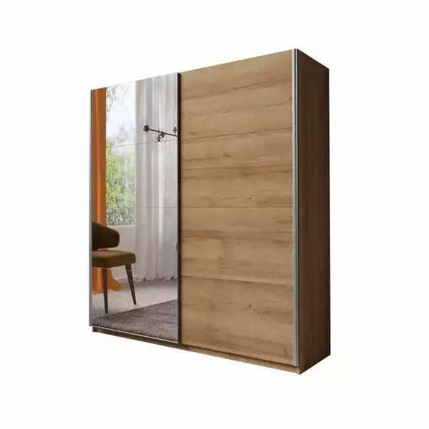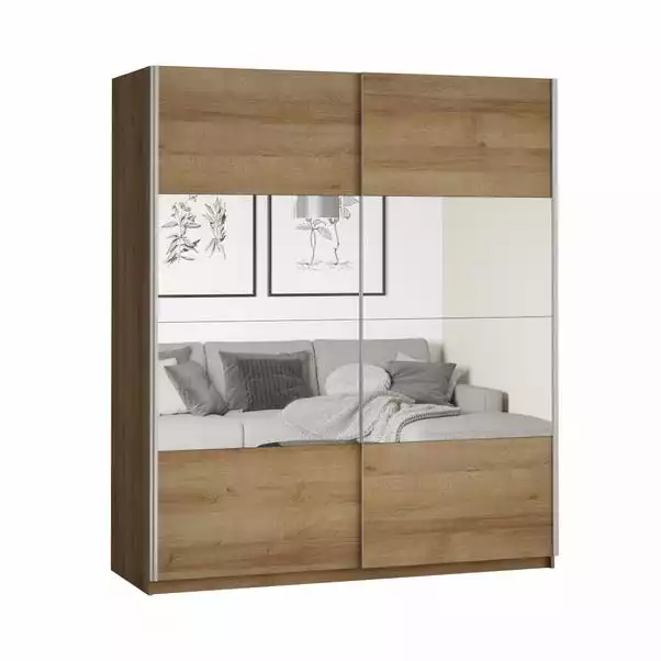 Make way for your new favourite thing in the house! A stylish and spacious storage solution, perfect for any modern bedroom. The Lincoln Sliding Wardrobe features a laminate carcass with modern mirrored laminated sliding doors. This practical wardrobe has flexible storage solutions, one side is supplied with a hanging rail and the other with additional adjustable shelving so you can customise the interior for your convenience and suitability. The doors arrive with fixed mirror panels, complete with a soft close system attached onto the frame to ensure safety and discreet use.