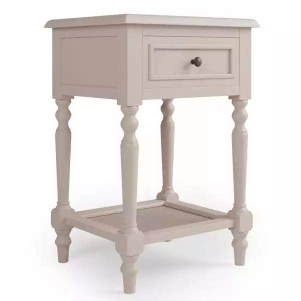 Boho, country-classic, minimalist, japandi. Whatever your style, our Lucy nightstand will suit it. This bedside takes inspiration from vintage French styling, with classic turned legs and an aged painted finish. The single drawer is ideal for stashing away your night-time essentials, and the low woven cane bottom shelf can be used as additional storage or to display your more stylish treasures.