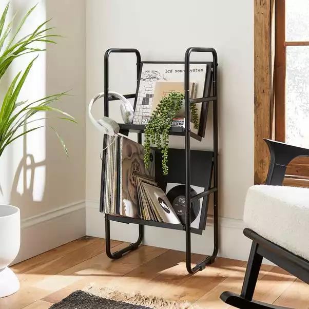 This Magazine Vinyl Storage Tower feature two sturdy shelves, perfect for rooms with limited space thanks to the compact and smart design that ensures maximum surface area to display books and magazines. Made from a sturdy metal construction and easy to assemble.