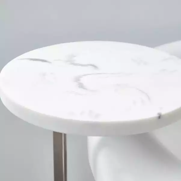 Simple yet stylish and the perfect bathroom accompaniment, this modern bath table, crafted from a quality stainless steel with white marble top finish, is great for keeping your bathroom products and accessories in one easy to access spot or to hold your glass and tealights while you relax in the bath.