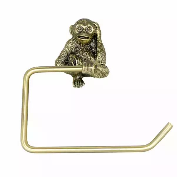 With a brass gold effect finish, this toilet roll holder has a unique design featuring a cute monkey that brings a touch of the tropical to your bathroom.