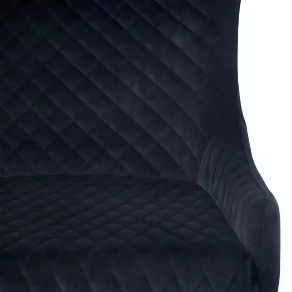 Boasting a classic style with a modern industrial twist, the Montreal bar stool is upholstered in a soft velvet fabric, and constructed with a sturdy powder-coated metal frame complete with a crossbar footrest. This gorgeous bar stool also features a stunning diamond quilted design, complemented by the gentle sloped arms and finished in a Stylish Colourway.