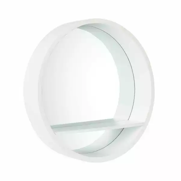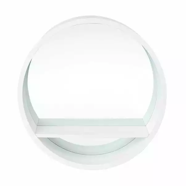 This round mirror has been crafted with a modern, on trend nautical design that is simple yet stylish. The mirror comes fitted with a shelf which is a great storage solution for your bathroom! Easy to install, the mirror arrives fully assembled ready to hang on your wall.