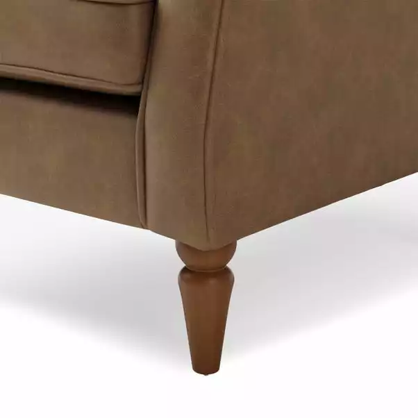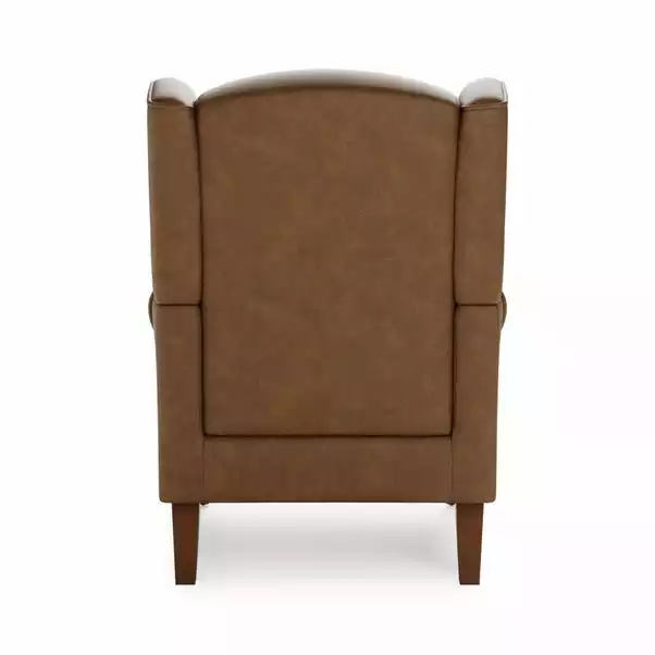 Designed with comfort in mind, the Oswald armchair is upholstered in a distressed faux leather design, complete with foam and fibre filled cushions, and a pocket sprung seat for additional support. With a traditional wingback design, this part assembly armchair features scrolled arms and oak finished wooden legs. This classic armchair is also available in a range of different colours and styles and offers easy assembly; just attach the feet and you’re ready to relax.