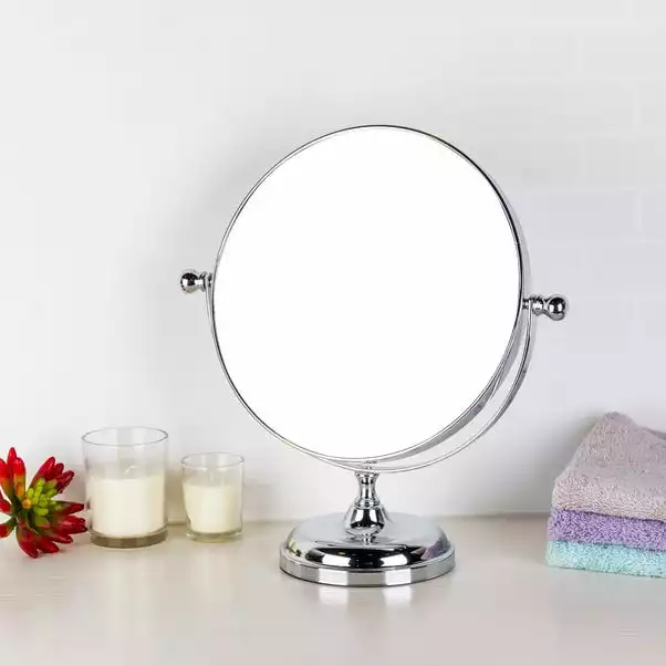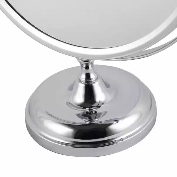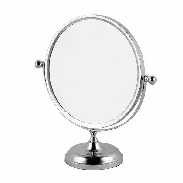 Providing 1x and 2x magnification options to help you see every detail of your hair and makeup, this oversized mirror with chrome finish is in a pedestal style to allow free movement wherever fits your needs.
