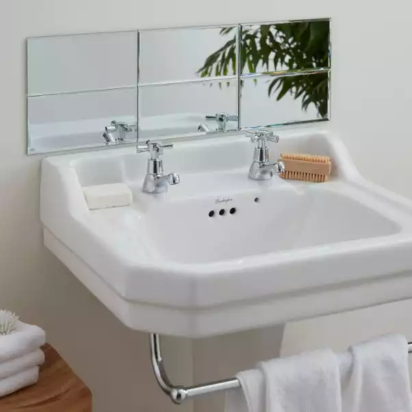 Add a personal touch to your bathroom by hanging these 6 brick style designed mirrors in an arrangement you desire. Each mirror has bevelled smooth edges and are easy to install with their self-adhesive application method. Suitable for humid environments, these mirrors are easy to wipe clean.