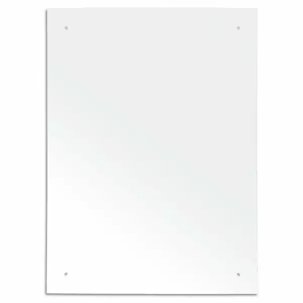 This plain rectangular mirror features four drilled holes ready for easy wall hanging and chrome washers to cover the fixings.