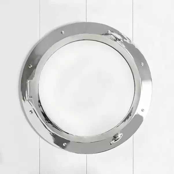 With a fun, contemporary port hole design, this circular mirror is finished in a shiny chrome silver colour and crafted from high quality, durable materials. It is wall mounted and can be fitted to most flat wall surfaces.