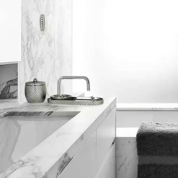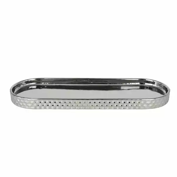 Ideal for storing your bathroom essentials, this silver tray has been finished with a hammered effect design for a modern edge.