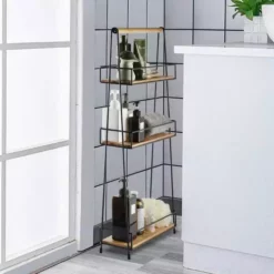 Perfect for storing all your bathroom accessories, this 3 tiered caddy boasts a fashionable black wire design that would look good in any bathroom. made from durable bamboo and iron this caddy is strong and is also perfect for smaller bathrooms due to its space-saving slim design.