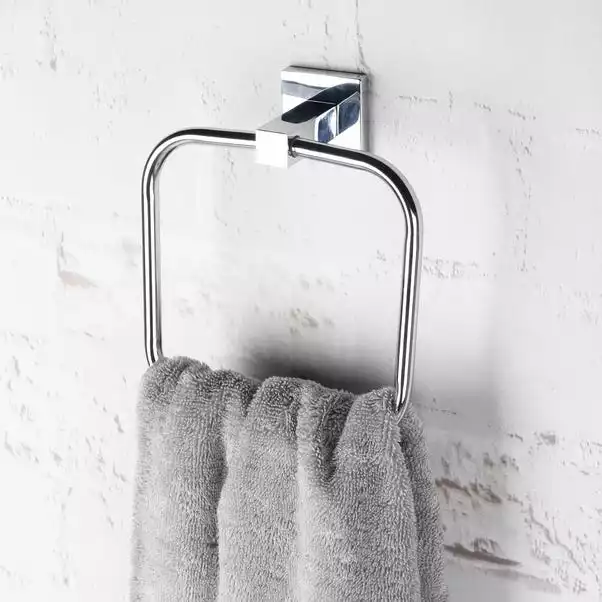 Save space in your bathroom with this wall mounted towel ring with a modern square design, suitable for any style of bathroom. Finished with concealed screws, this towel ring is easy to install with mounting hardware and an instruction sheet included.