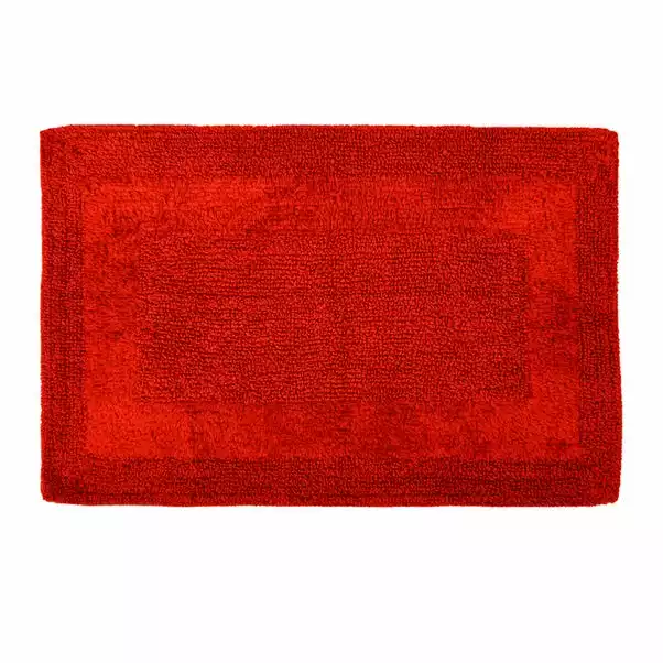 Fabricated from super soft 100% cotton for a sumptuous feel on your feet as you step out of the bath, this reversible bath mat is available in red and is machine washable for easy care and convenience.