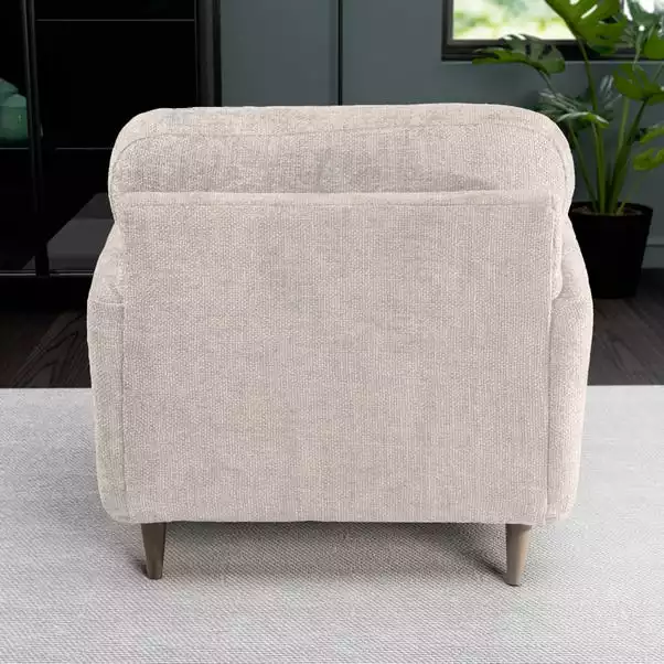 A compact snuggle chair with a modern buttoned back and soft touch chenille upholstery, this chair is made from 100% recycled polyester to ensure a low carbon footprint. Comfortable foam and fibre-wrap seat cushions allow you to relax for hours on end.