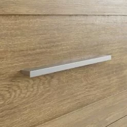 This Toby 3 Drawer Bedside features 3 spacious drawers, perfect for all your bedside storage needs. Featuring classic yet contemporary shaker style details and finished with a wood effect and sleek matte silver metal handles, this bedside is sure to be a hit in any home.